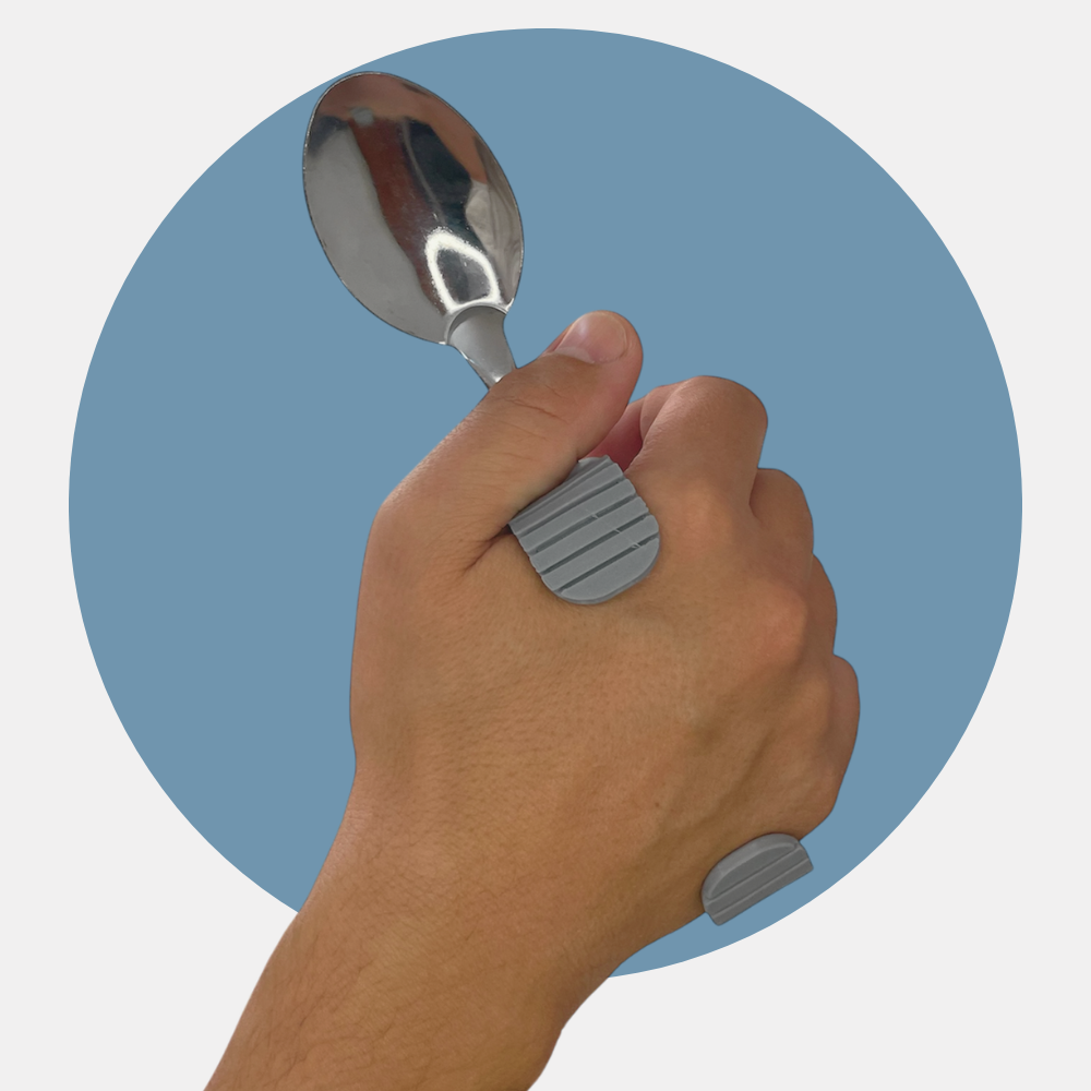 Su material permite moldearse según la forma de la mano del usuario, logrando un ajuste personalizado que facilita sostener cubiertos sin necesidad de ejercer fuerza de agarre. Esta adaptación mejora la estabilidad durante las comidas y reduce el esfuerzo en dedos y muñeca.